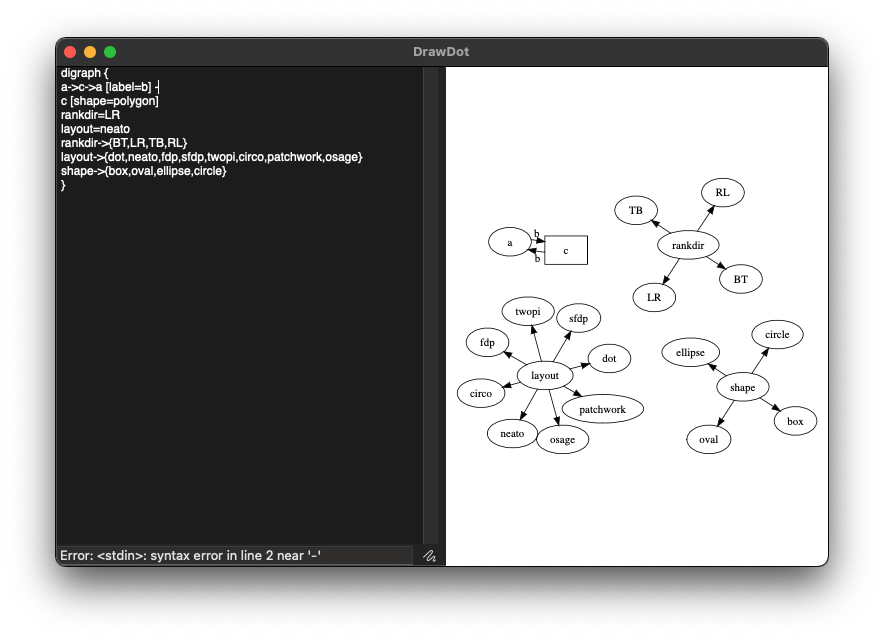 Visual graphviz instantly. Tested on: MacOS M1 Pro. Keywords: dot, swift, xcode.